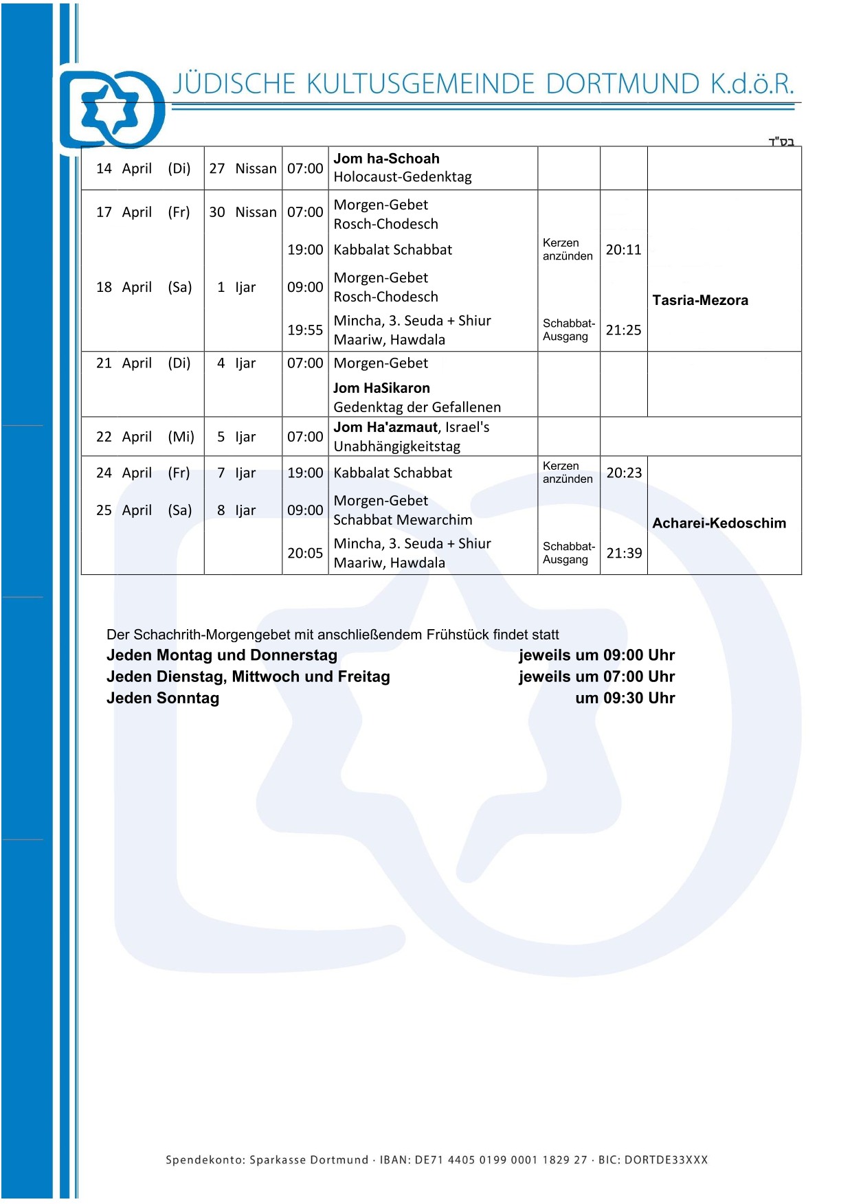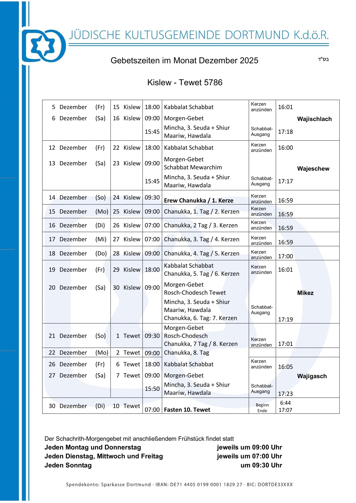 Все детали и точное время Вы найдете в актуальном списке молитв.